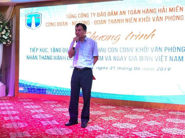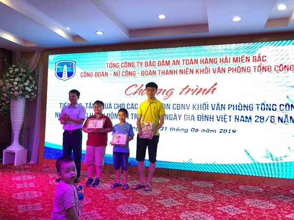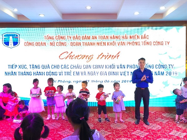 Chiều ngày 21 tháng 6 năm 2019, Công đoàn khối Văn phòng Tổng công ty Bảo đảm an toàn hàng hải miền Bắc (TCT BĐATHH MB) đã tổ chức Chương trình tiếp xúc, tặng quà cho các cháu CBNV khối Văn phòng Tổng Công ty nhân tháng hành động vì trẻ em và ngày gia đình Việt Nam 28/6 năm 2019 cho các cháu là con em cán bộ công nhân viên khối Văn phòng Tổng công ty.