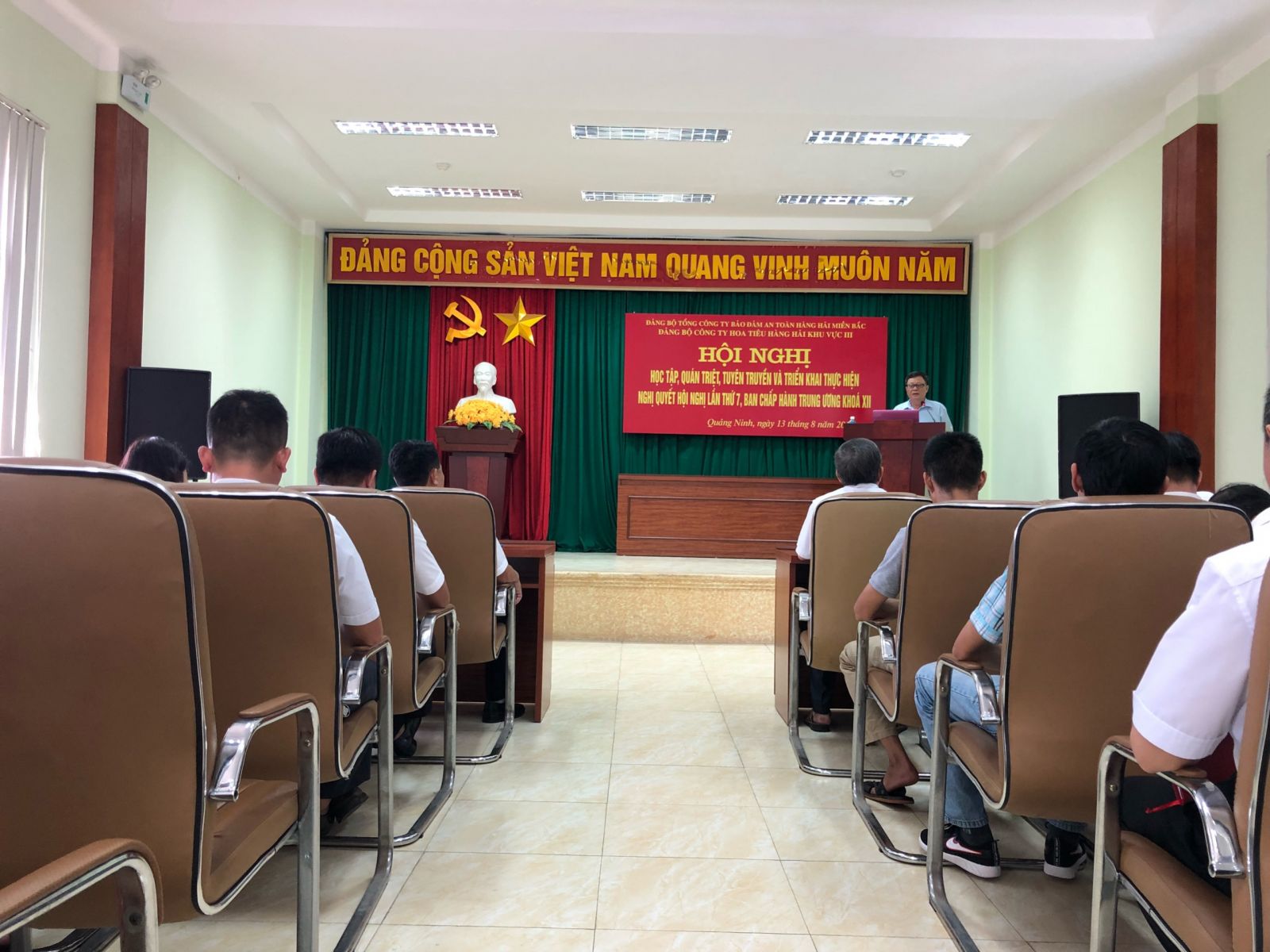 Sáng 13/8/2018, Đảng bộ Công ty Hoa tiêu hàng hải khu vực III đã tổ chức Hội nghị “Học tập, quán triệt và triển khai thực hiện Nghị quyết Hội nghị Trung ương 7 khóa XII” nhằm giúp các cấp ủy Đảng, cán bộ, Đảng viên nắm vững nội dung Nghị quyết Hội nghị Trung ương VII, khóa XII. Tham dự Hội nghị có các đồng chí trong BCH Đảng bộ Công ty, cùng các Cán bộ, đảng viên và quần chúng ưu tú trong Công ty.
