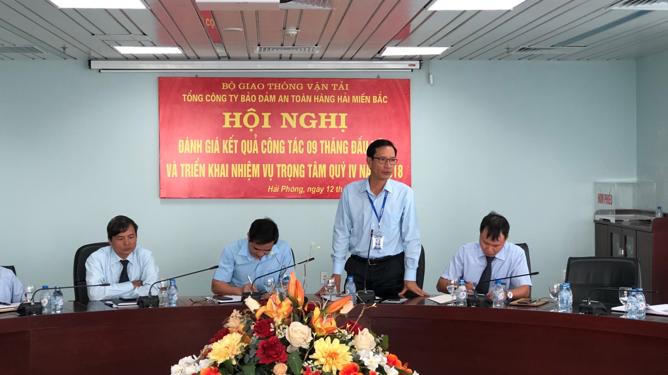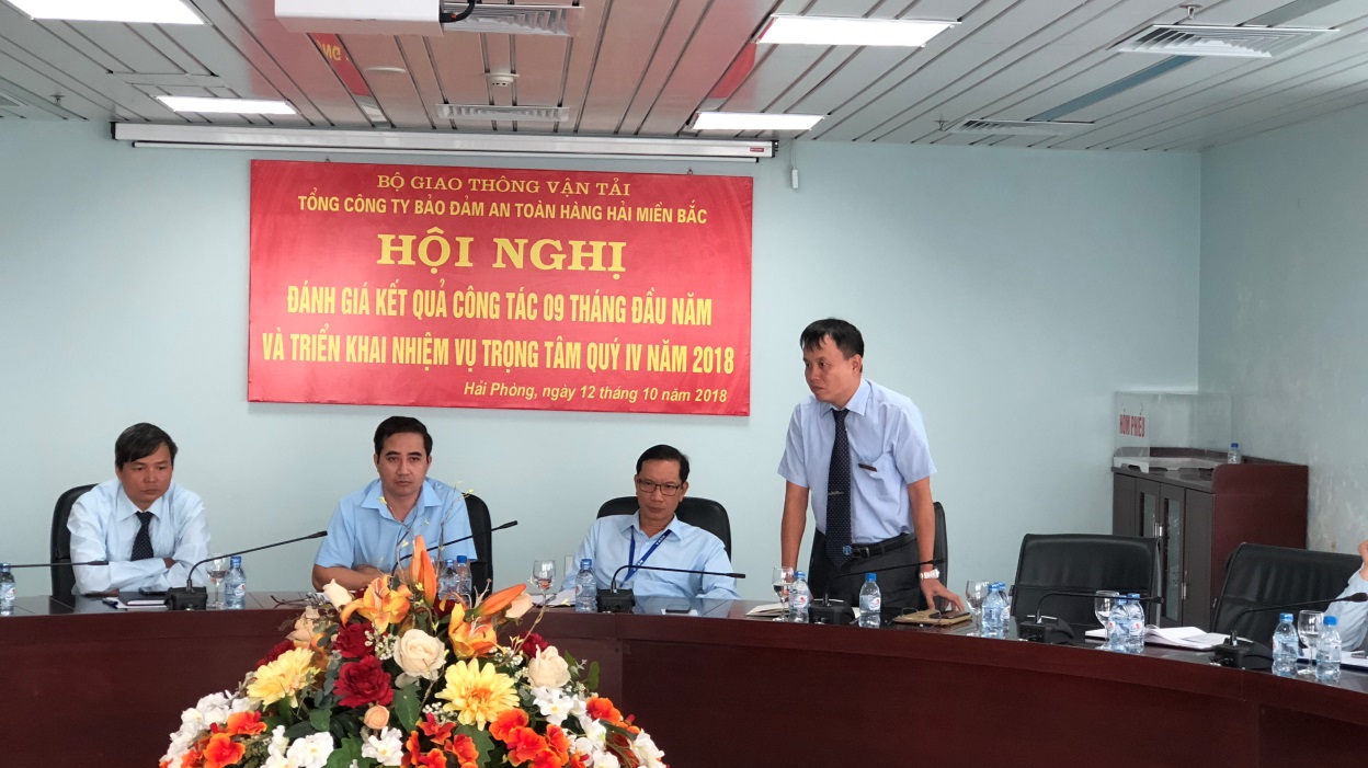 Sáng ngày 15/10/2018, Tổng công ty Bảo đảm an toàn hàng hải miền Bắc tổ chức Hội nghị đánh giá kết quả công tác 9 tháng đầu năm, triển khai nhiệm vụ trọng tâm đến hết năm 2018. Tới dự và chỉ đạo Hội nghị có đồng chí Phạm Quốc Súy - Bí thư Đảng ủy, Chủ tịch Hội đồng thành viên; đồng chí Đồng Trung Kiên – Tổng Giám đốc; đồng chí Lê Mạnh Toàn – Phó Bí thư Thường trực Đảng ủy; các đồng chí thành viên Hội đồng thành viên, Ban Giám đốc; các đồng chí là Lãnh đạo các Phòng, Ban, đơn vị thuộc Tổng công ty Bảo đảm an toàn hàng hải miền Bắc.