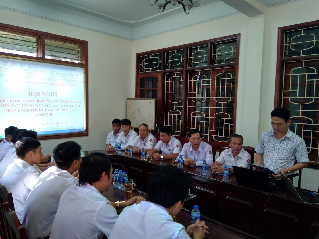 Ngày 23/11/2018, Cục trưởng Cục Hàng hải Việt Nam ban hành Quyết định số 1922/QĐ-CHHVN về việc cấp Giấy chứng nhận khả năng chuyên môn hoa tiêu hàng hải (GCNKNCMHTHH) và Giấy chứng nhận vùng hoạt động hoa tiêu hàng hải (GCNVHĐHTHH) cho hoa tiêu hàng hải hạng Ba. Ngày 05/12/2018, Công ty TNHH MTV Hoa tiêu hàng hải khu vực VI đã tổ chức Hội nghị triển khai Quyết định của Cục trưởng Cục hàng hải Việt Nam. Tới dự Hội nghị có đồng chí Nguyễn Đức Bảy - Chủ tịch Công ty; đồng chí Đào Mạnh Hà - Giám đốc; các đồng chí Phó giám đốc, trưởng, phó các phòng ban trong đơn vị.