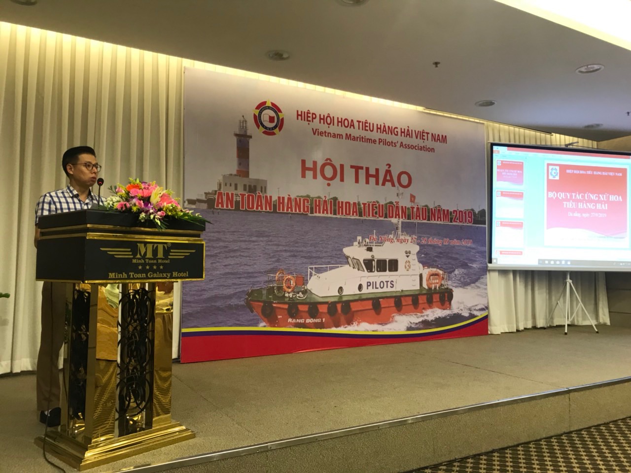 Sáng ngày 27/9/2019 tại phòng họp Mercury, Khách sạn Minh Toàn Galaxy, Thành phố Đà Nẵng. Hiệp hội hoa tiêu Hàng hải Việt Nam đã long trọng khai mạc chương trình Hội thảo an toàn hàng hải Hoa tiêu dẫn tàu năm 2019.