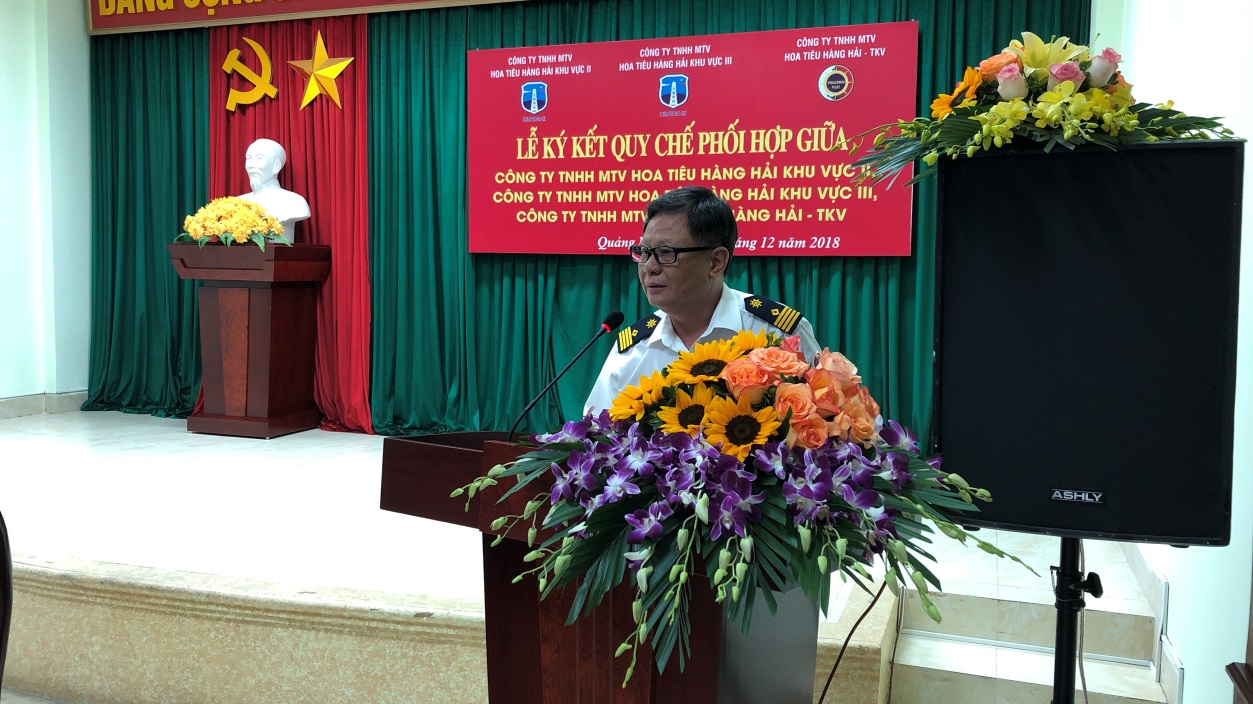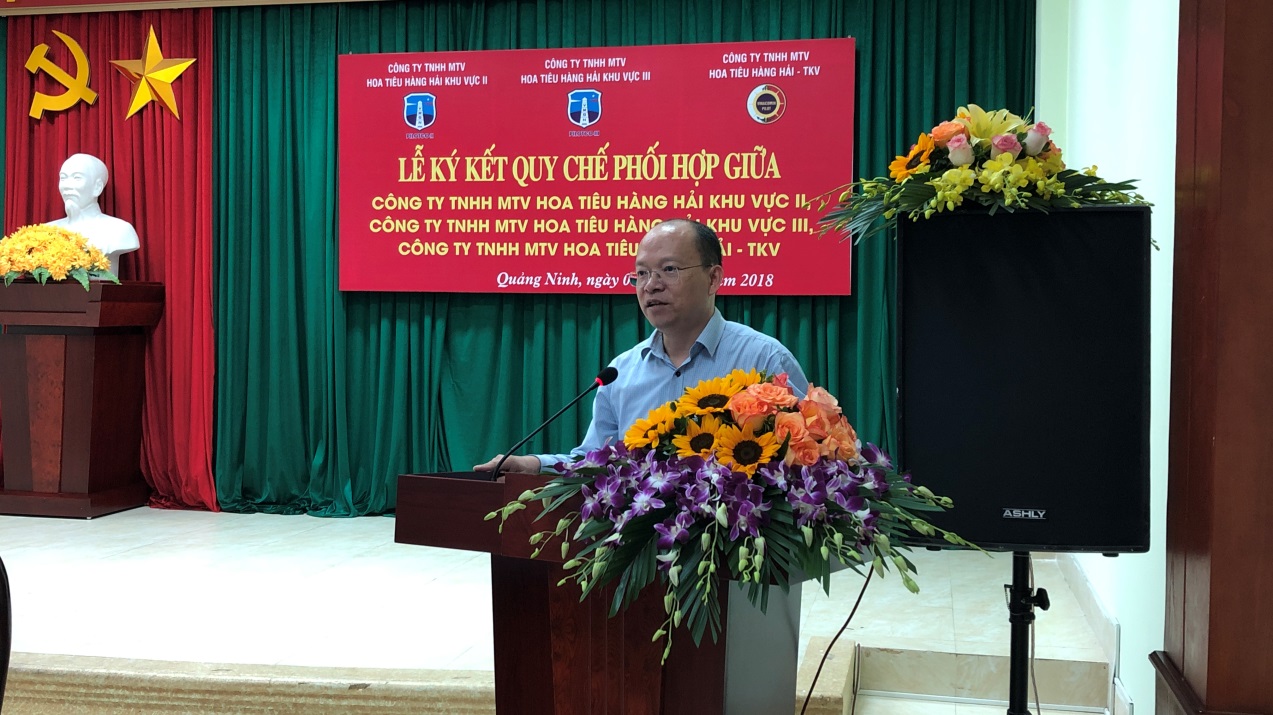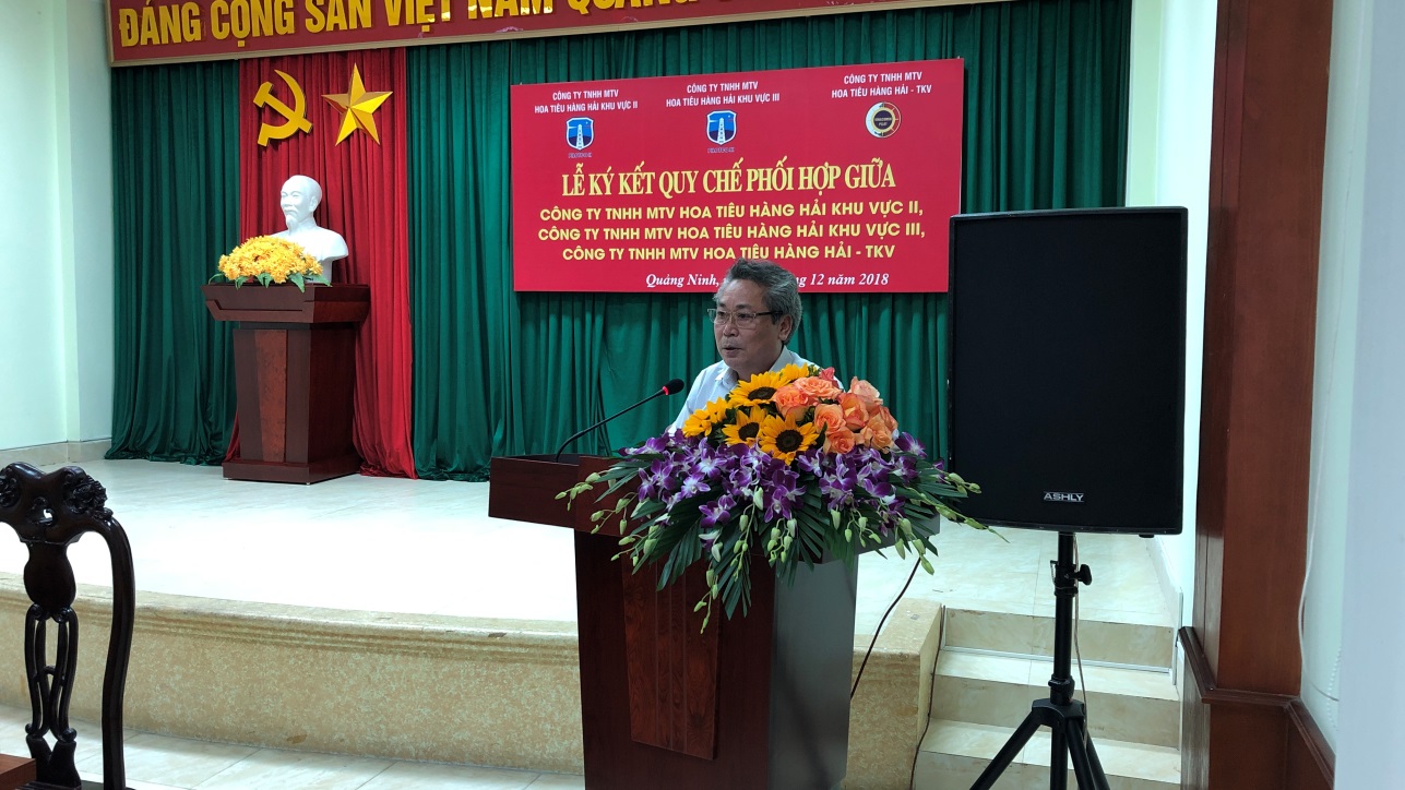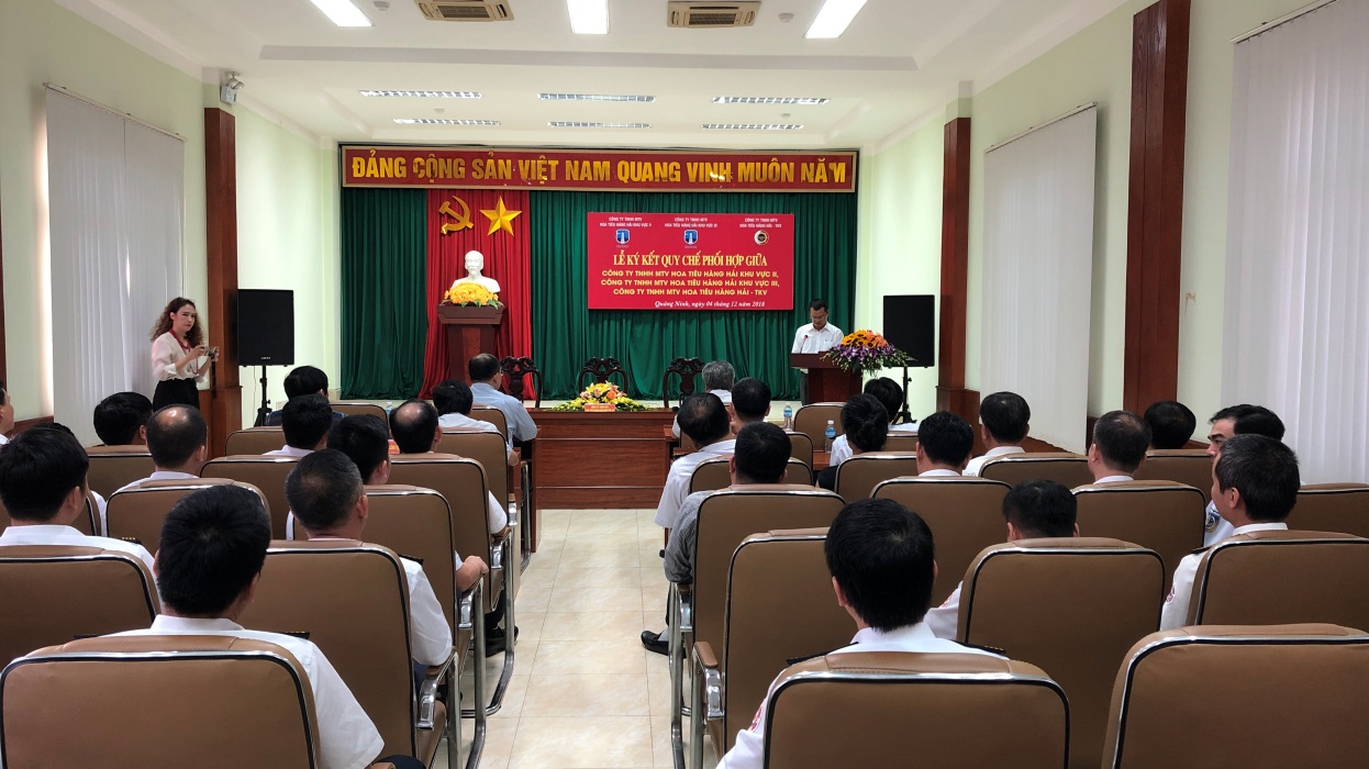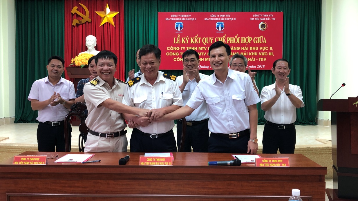 Chiều ngày 4/12/2018, tại Hội trường của Công ty TNHH MTV Hoa tiêu hàng hải khu vực III đã diễn ra Lễ ký kết Quy chế phối hợp giữa Công ty TNHH MTV Hoa tiêu hàng hải khu vực II, Công ty TNHH MTV Hoa tiêu hàng hải khu vực III và Công ty TNHH MTV Hoa tiêu hàng hải TKV. Đến dự buổi ký kết, về phía Cục Hàng hải Việt Nam có đồng chí Bùi Thiên Thu – Phó Cục Trưởng Cục Hàng hải Việt Nam; về phía Tổng công ty Bảo đảm an toàn hàng hải miền Bắc có đồng chí Mai Xuân Thắng – Phó Tổng Giám đốc Tổng công ty; và các đồng chí Lãnh đạo đại diện cho Cảng vụ Hải Phòng, Cảng vụ Quảng Ninh, Công ty TNHH MTV Hoa tiêu hàng hải khu vực II, Công ty TNHH MTV Hoa tiêu hàng hải khu vực III, Công ty TNHH MTV Hoa tiêu hàng hải TKV.