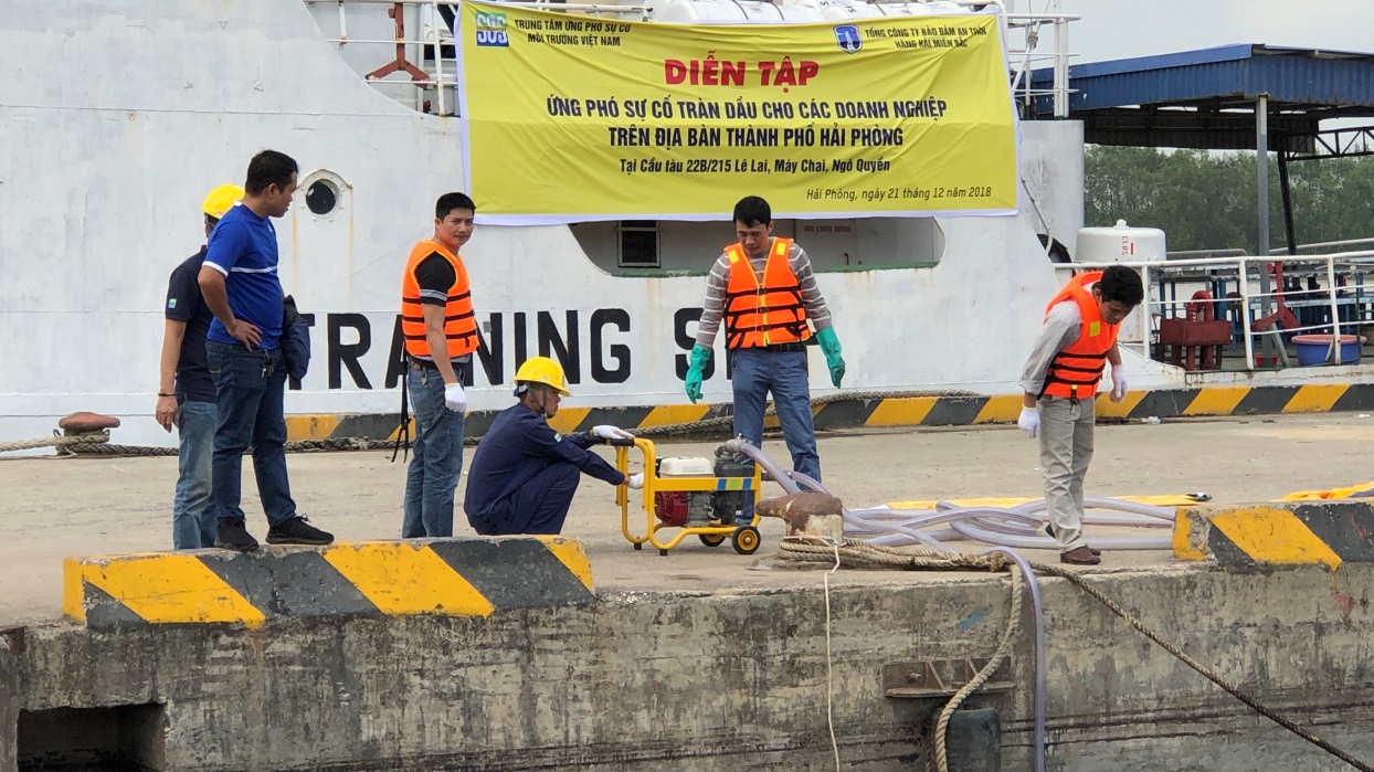 Chiều ngày 21/12/2018, Tổng công ty Bảo đảm an toàn hàng hải miền Bắc phối hợp với Trung tâm ứng phó sự cố môi trường Việt Nam tổ chức diễn tập ứng phó sự cố tràn dầu tại cầu tàu 22B/215 Lê Lai, Máy Chai, Ngô Quyền thuộc quản lý của Tổng công ty Bảo đảm an toàn hàng hải miền Bắc. Đến dự buổi diễn tập có các cán bộ của cả hai đơn vị.