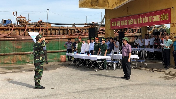 Tình huống diễn tập đặt ra do ảnh hưởng của bão số 02 gây mưa to, giông sét, gió giật mạnh trên khu vực phía Bắc Vịnh Bắc Bộ, cách các tỉnh Quảng Ninh – Nam Định khoảng 190 km về phía Đông gây nguy hiểm cho các tàu đang neo đậu.