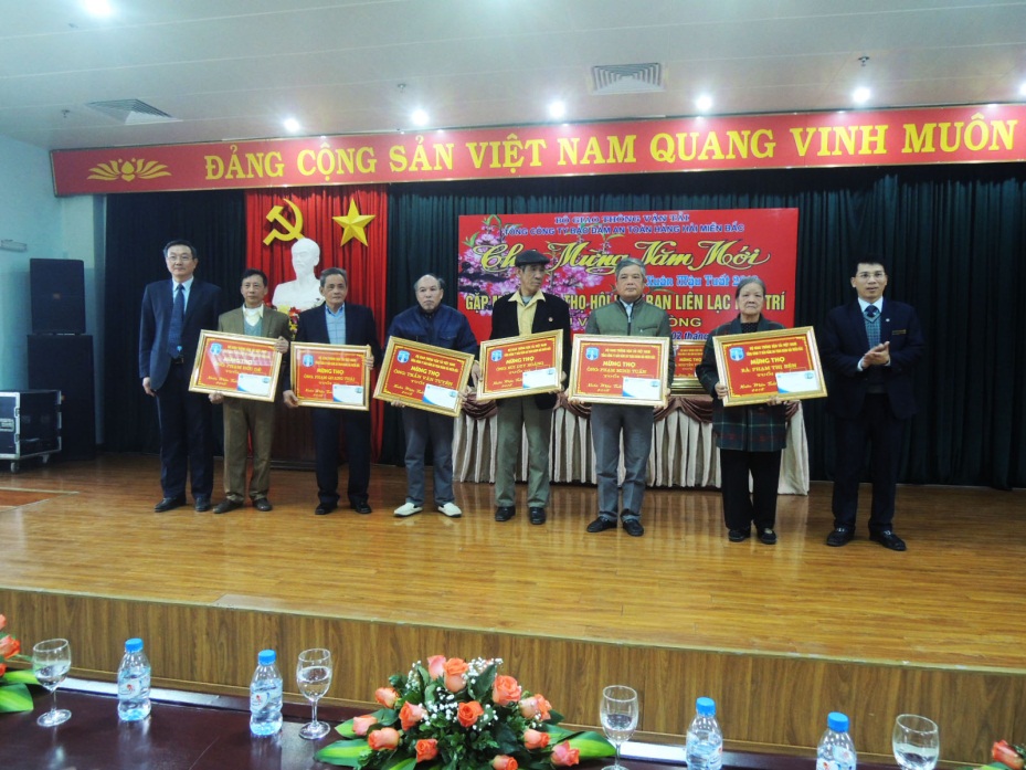 trao quà mừng thọ cho các cán bộ hưu trí
