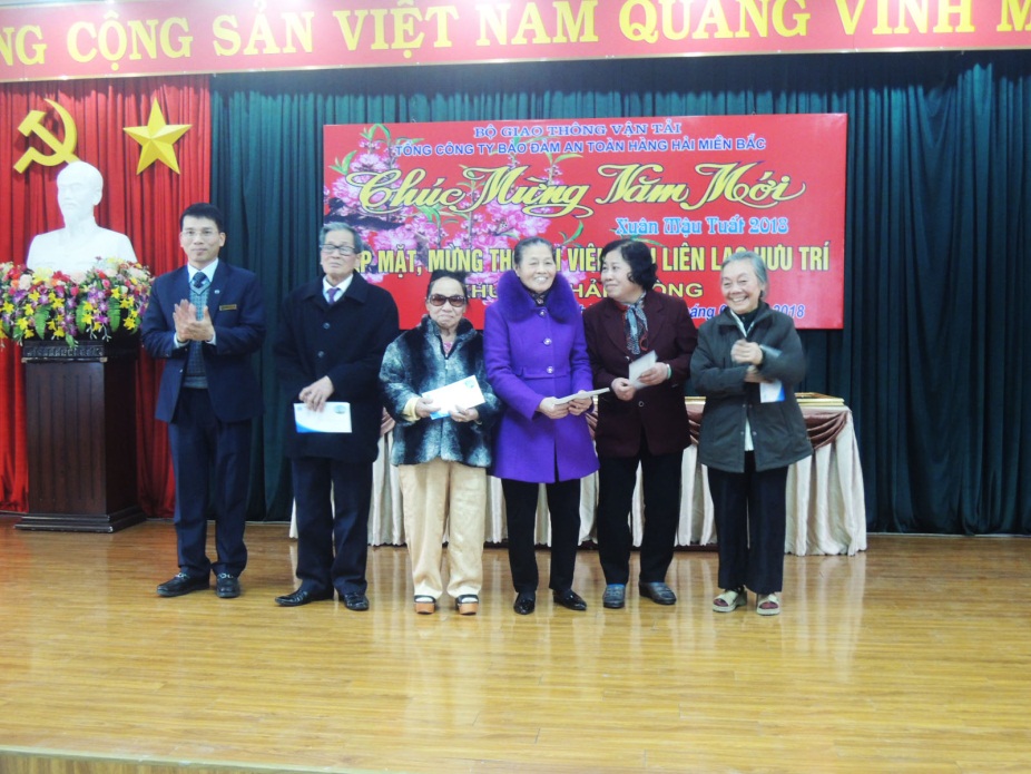 Chiều ngày 2/2/2018, Tổng công ty Bảo đảm an toàn hàng hải miền Bắc tổ chức buổi Lễ Gặp mặt, mừng thọ Hội viên Ban Liên lạc hưu trí khu vực Hải Phòng mừng xuân Mậu Tuất 2018. Đến dự buổi Lễ có đồng chí Lưu Văn Quảng – Bí thư Đảng ủy, Tổng Giám đốc; đồng chí Phạm Quốc Súy – Phó Bí thư Đảng ủy, Chủ tịch Hội đồng thành viên; đồng chí Nguyễn Trọng Vinh – Thành viên Hội đồng thành viên, Chủ tịch Công đoàn, Trưởng Ban Liên lạc hưu trí Tổng công ty; các đồng chí thành viên Hội đồng thành viên, Ban Giám đốc, Đảng ủy, Công đoàn, Đoàn Thanh niên, Lãnh đạo các phòng, ban, đơn vị và trên 300 cán bộ hưu trí tại khu vực Hải Phòng.