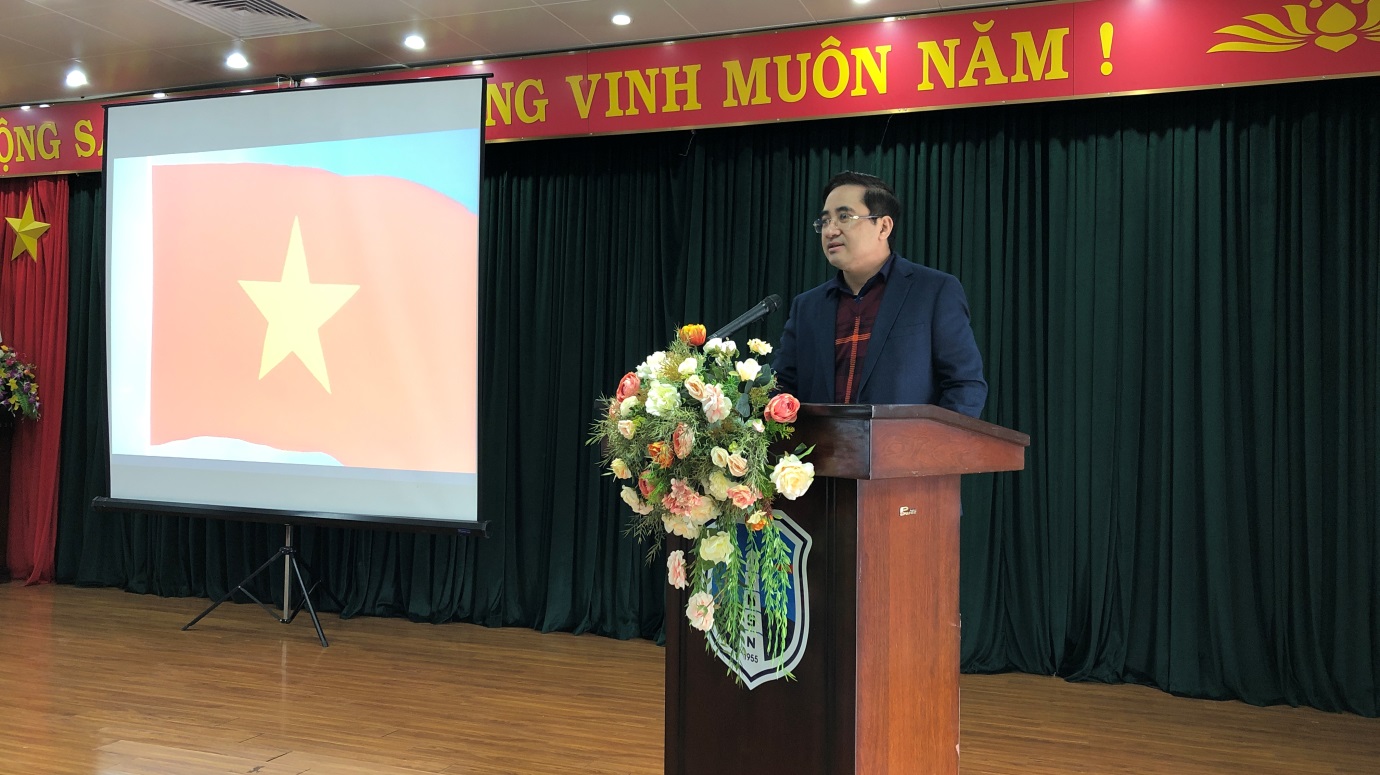 Đ/C Lê Mạnh Toàn - Phó Bí thư Thường trực Đảng ủy phát biểu bế mạc buổi Lễ Chào cờ đầu tháng 1 năm 2019