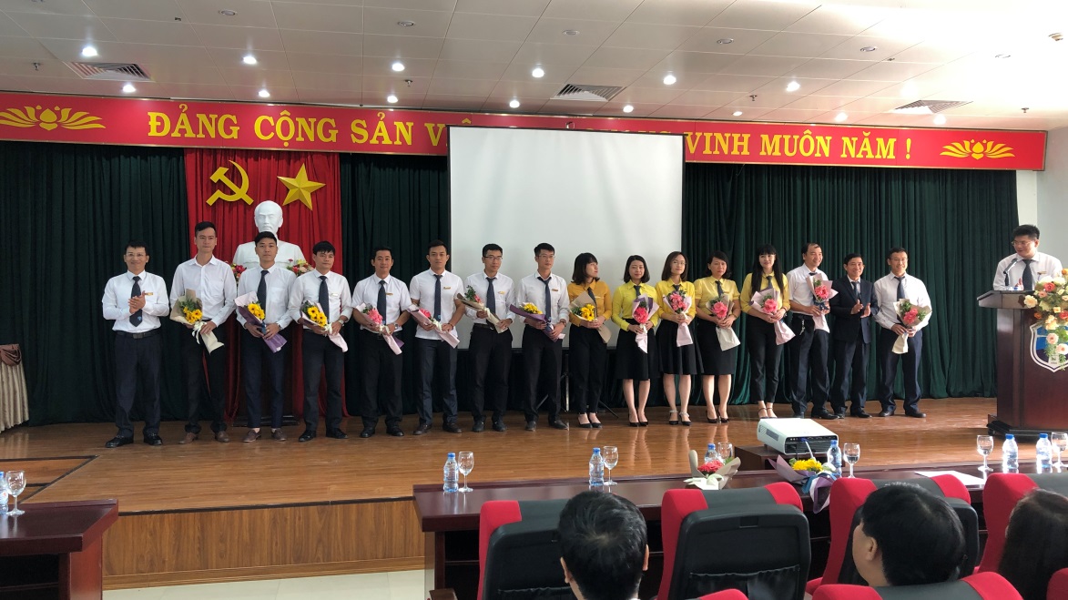 và Đ/C Nguyễn Thanh Hải – Trưởng phòng Tổ chức cán bộ lao động trao hoa chúc mừng các CBCNV có sinh nhật trong tháng 11